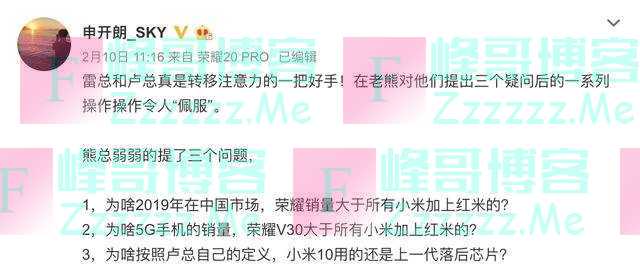 随后,面对小米的多次挑衅,荣耀终于做出了回应。老熊在微博向对方问了三个问题:
