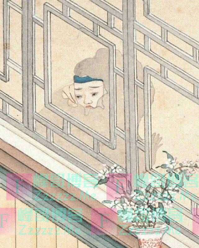 下面我们聊到的是一张关于清朝流传下来的 《窥窗见鬼》 图,该作品的主题就是由蒲松龄所创作的《聊斋志异》展开,而且里面的内容就是根据一个故事所画出来的。