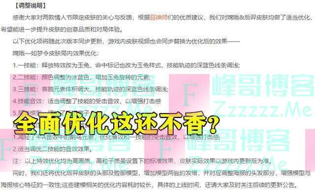 不过更多玩家认为,哪有那么多花里胡哨的想法,作为一款皮肤,好看就完事了!至于出场动画里的那只兔子,官方已经听取了大家的意见做了优化,也就是说现在嫦娥皮肤的技能特效已经改了,1技能的喜鹊变成了玉兔,同时玉兔会一直跟在嫦娥身边,至于后羿,相信喜欢打击感的玩家会尤其钟爱这款皮肤,天美官方特意为这款皮肤的一技能和普攻的受击音效做了优化,这还不香吗?