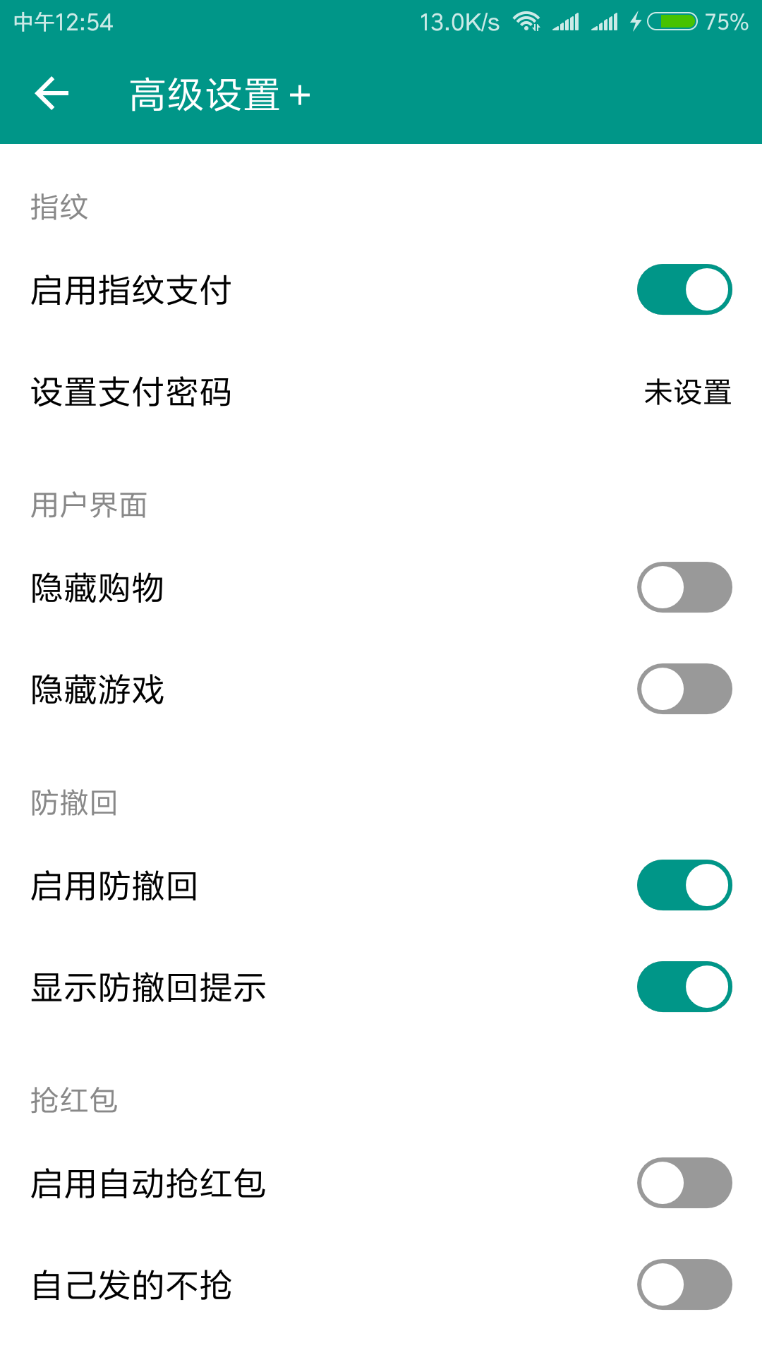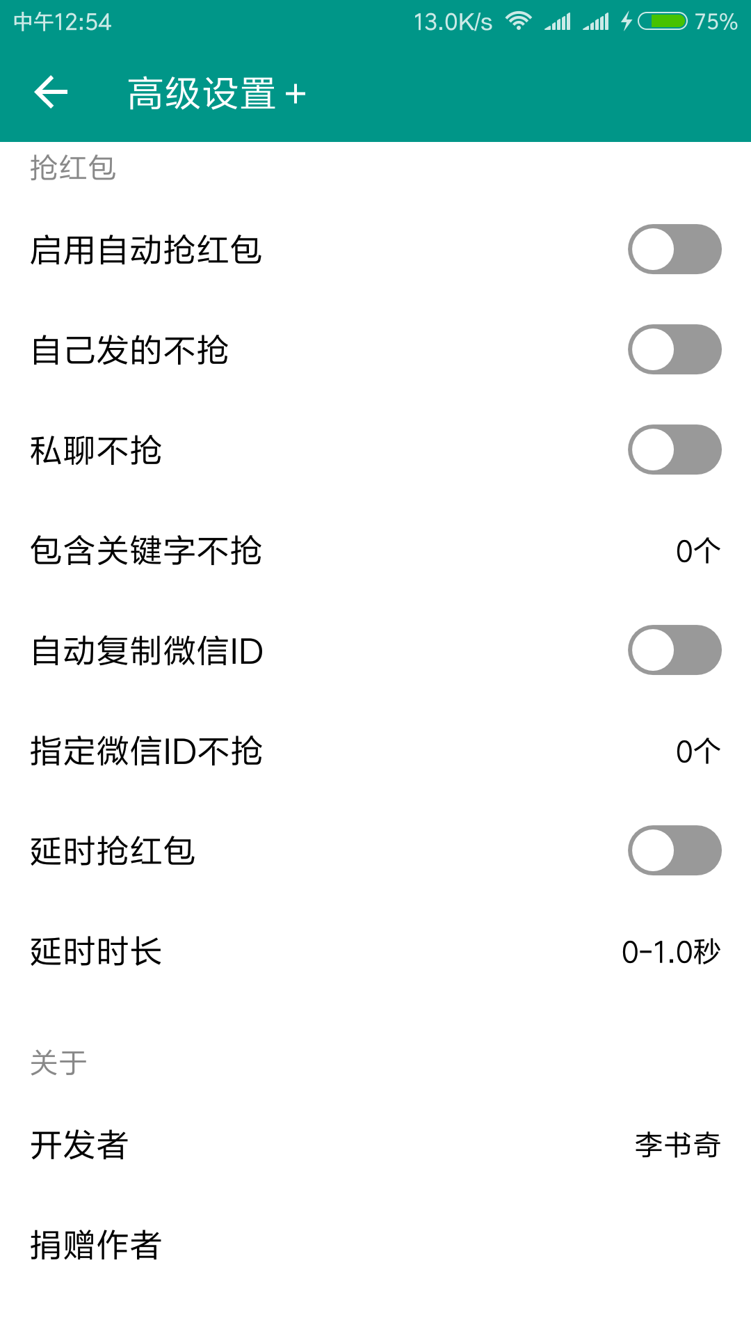 注意:首次使用要到设置-高级设置中打开抢红包功能