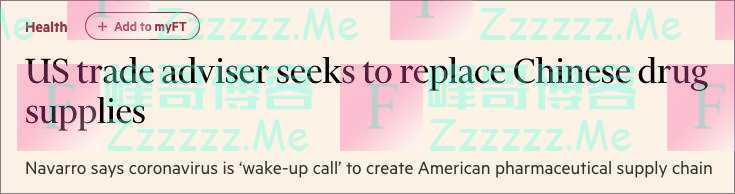 美国白宫贸易与制造业政策办公室主任彼得·纳瓦罗对《金融时报》说,新型冠状病毒就是打造美国医药供应链的“叫醒闹钟”。他敦促美国应借疫情爆发这个时机减少美国在医药化学领域对中国及其他国家供应链的依赖。这是让美国实现“更伟大”的重要一步。