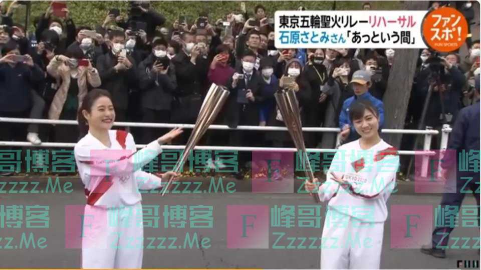 15日,日本举行奥运火炬手彩排,包括该国著名演员石原里美(左)在内的多名火炬手参加。(图片来源:日本富士电视台视频截图)