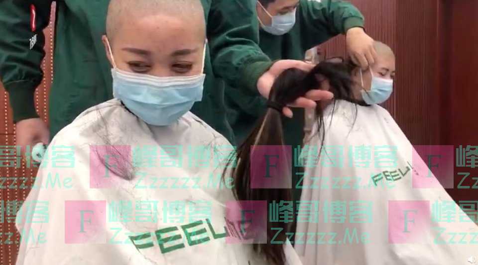 其中一个长发漂亮的护士姐姐,在剪头前一直在捂着脸小声抽泣,旁边有人抱着她安慰,还不断地撩着她的头发。
