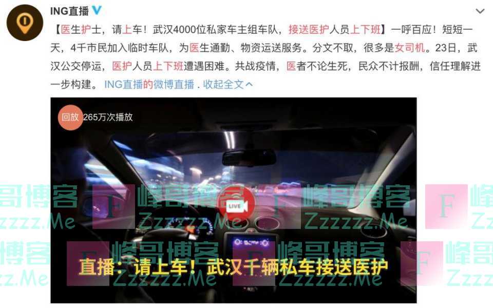 在得知此困难之后,武汉4000位私家车主组建了车队,为医生通勤、物资运送等服务,分文不取,而很大部分都是女司机。