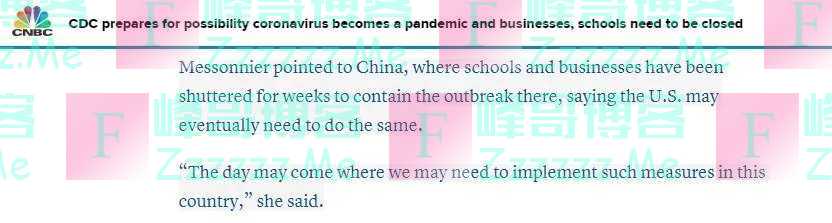 CNBC:CDC为新冠病毒可能发生大流行做准备,工厂、学校可能也需要关闭
