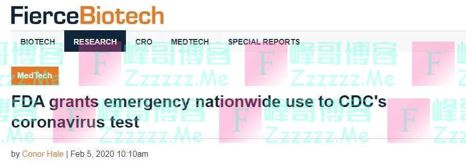 美国Fierce Biotech网站:FDA紧急授权全国范围内使用CDC的核酸检测