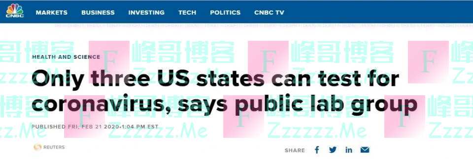 CNBC:公共实验室组织说,仅有3个州可进行新冠病毒检测