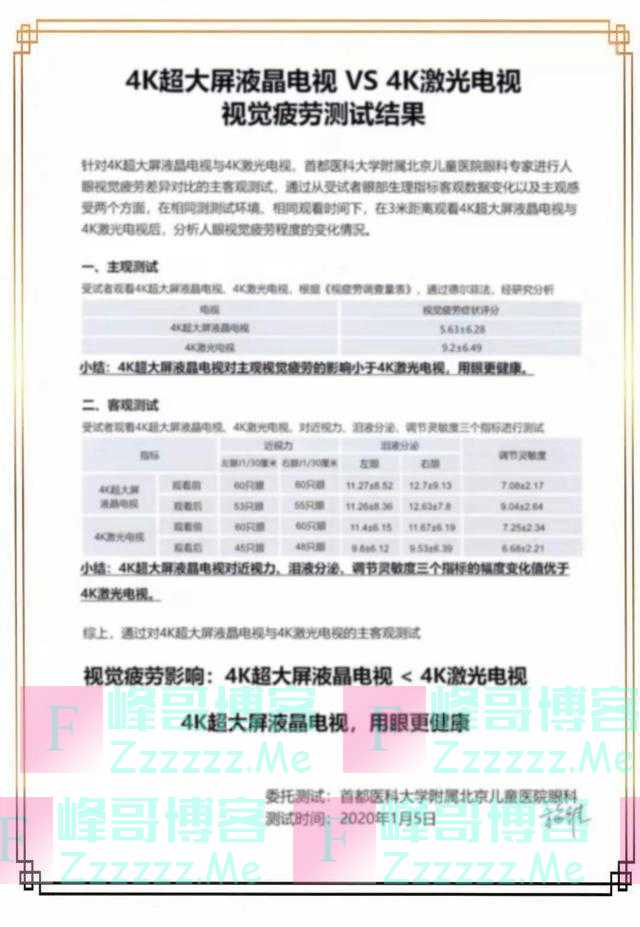 说它伤眼可不是空穴来风,根据首都医科大学附属北京儿童医院眼科针对观看电视视觉疲劳问题出炉的专业鉴定报告显示,同等情况下,就视觉疲劳影响来讲,4K激光电视对于视觉疲劳造成的影响是大于4K液晶电视的。也就是说4K液晶电视更加符合用眼健康。