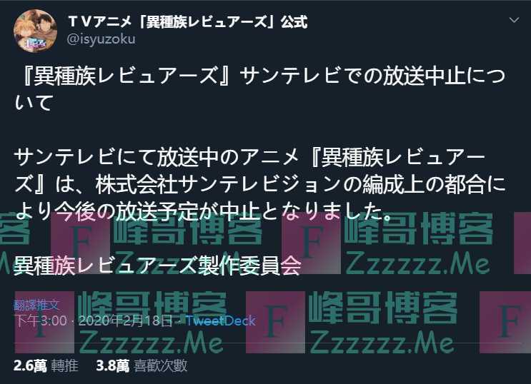 作为在日本电视界十分有影响力的非政府放送伦理审查机构BPO,遇上这样的大尺度深夜档TV动画,接到观众的投诉之后,肯定是不会放过的。于是乎,似乎真的是BPO发挥了威力,目前已经有两家日本的电视台正式宣布停播《异种族风俗娘评鉴指南》这部动画。