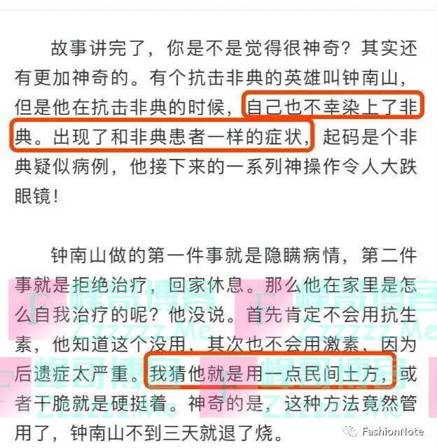 钟南山院士因为医院床位有限,选择家中挂水治疗,被说成是“硬挺着,用点民间的土方”“还神奇般的治好了”。