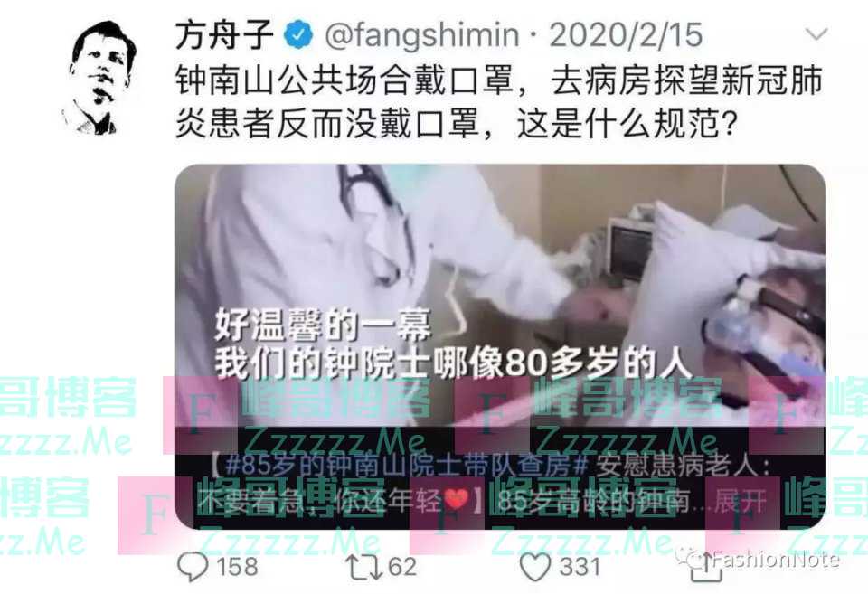 还拿一段视频说事,视频中,因为钟南山院士去看望病人没有戴口罩,说他的行为不规范。