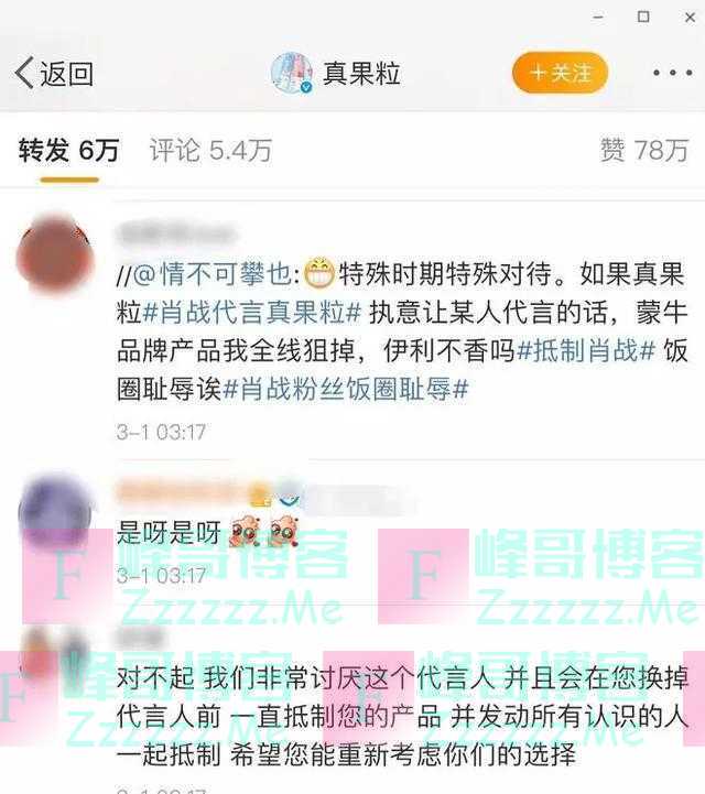 不少网友在昨天听到网站被封消息后,凌晨跑到肖战马上要官宣的代言品牌官微下怒斥,称如果执意要肖战代言,他们会抵制这个产品,并发动身边的人一起抵制。