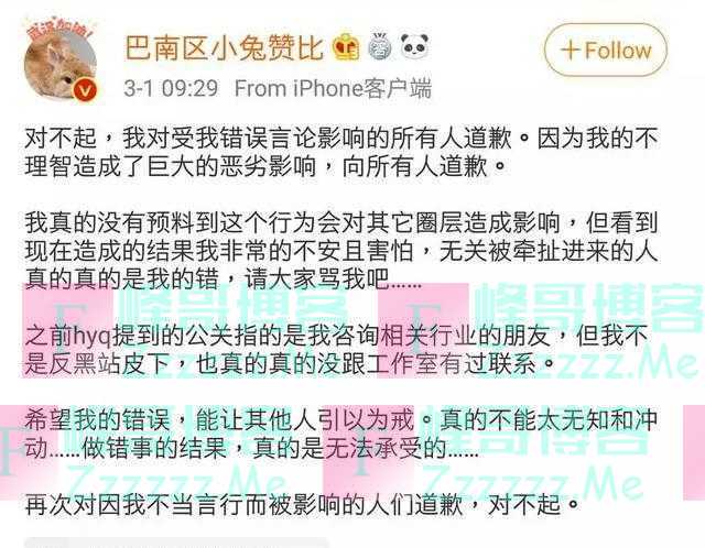 就算肖战大粉在事情发生后马上发文道歉,称因为自己的不理智造成了巨大的恶劣影响,向所有人道歉,表示自己不是反黑站皮下也没有和团队有联系。但这也平息不了众多网友的怒气。
