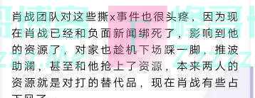 据说,肖战团队对这个事情也很头痛,肖战目前已经和负面新闻绑死了,影响到了他的资源,加上对家的推波助澜,肖战现在局势很不利。
