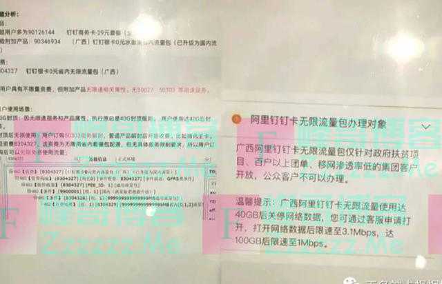 结果也是果不其然,由于这位用户的高调“炫富”,中国联通内部启动了调研流程。从内部人士流出的相关屏幕拍照来看,这位用户使用的套餐为“广西阿里钉钉无限流量”套餐。该资费的办理条件是仅针对政府扶贫项目、百户以上团单、移网渗透率低的集团客户,并不面向公众用户。