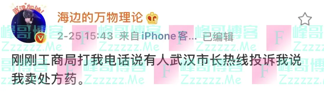 这一天,网友@海边的万物理论 发了一条微博哭诉,说自己被人举报非法“卖处方药”,从中“赚差价”,被公安局约谈了。