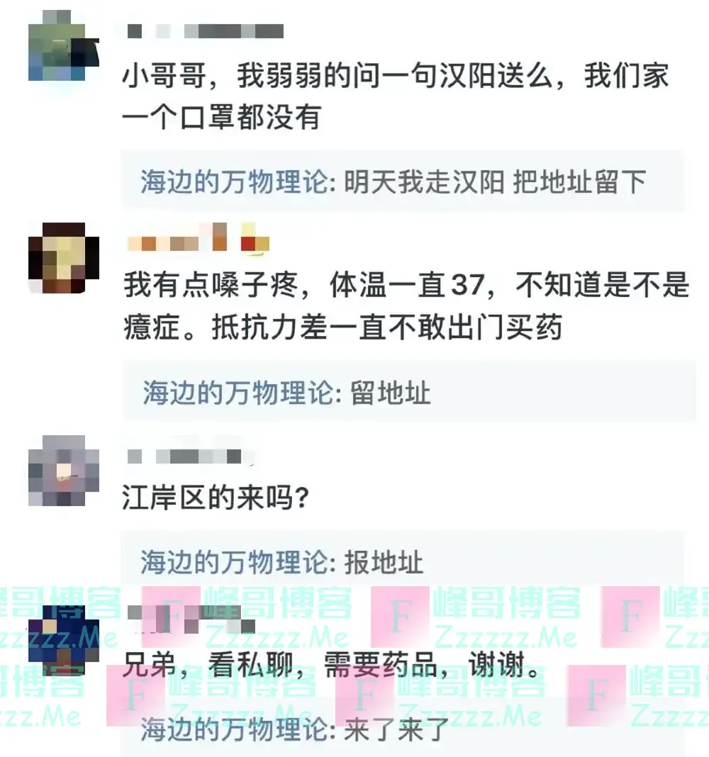 “汉口这边我知道一个地方还有口罩、药,我可以帮送,不收费。”