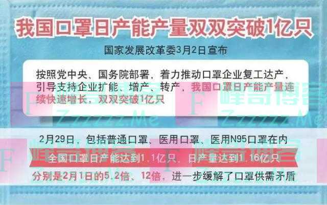 而疫情发生之后,中国众多的企业迅速调整产能,很多其它的企业也马上调整生产线,迅速的就开始生产口罩了,在3月份,中国的口罩总产能超过了2亿只每天。