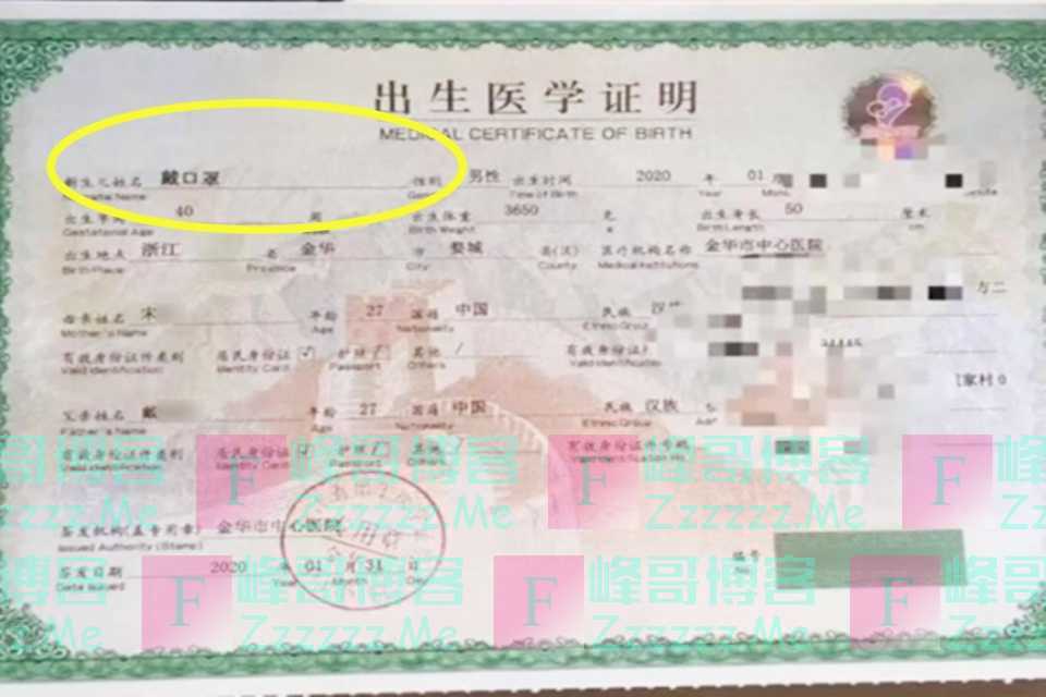 戴姓夫妇给儿子取名,为跟随形式,取名“戴口罩”。