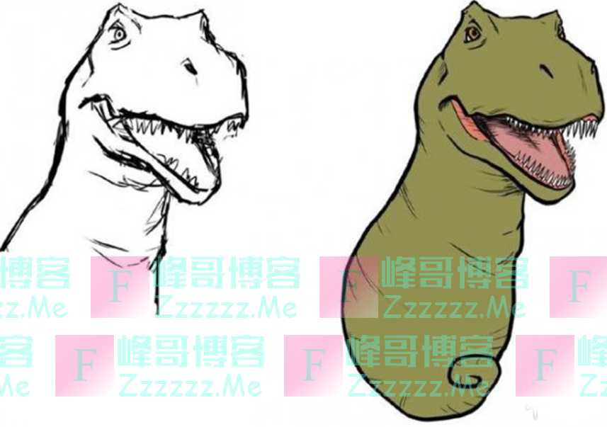 原本兴致勃勃地打算画出一头凶悍的霸王龙,没想到画到一半就放弃了,提笔接着画后又有点懒,干脆就将它画成了“霸王虫”。