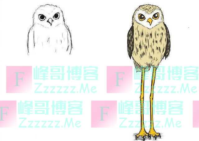原本只要将小短腿补完,就能画出一只萌呆猫头鹰!咳咳,可惜在放弃接着画之后,硬是将“胖胖”画成了大长腿,这是要上演“动物异常进化史”吗?