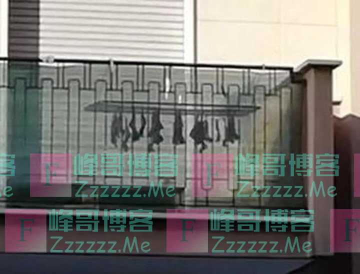 一华人在阳台上晒鸡翅,
