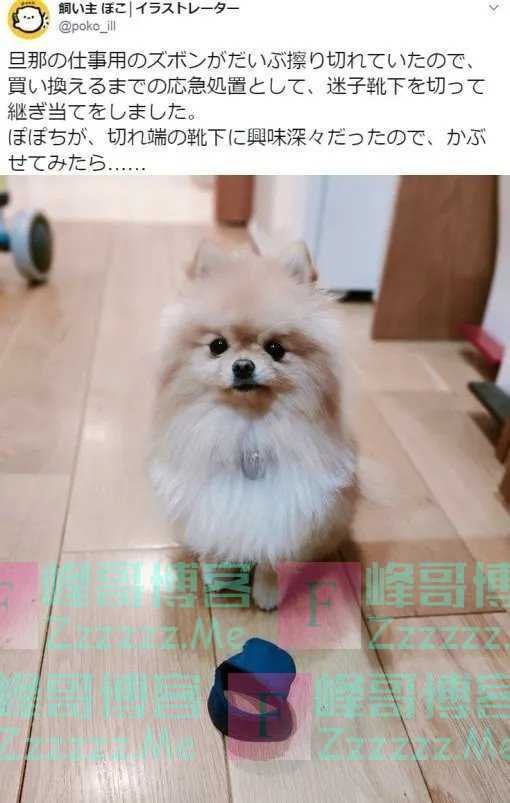 结果一旁的博美对剪下来的袜子边角料十分好奇,