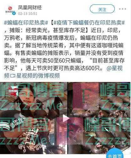 “尽管印尼政府针对新冠病毒防疫,已下令禁卖蝙蝠肉、老鼠肉,但在该国的一家以售卖蝙蝠肉而闻名世界的市场里,蝙蝠肉、老鼠肉、蛇肉仍然十分畅销。”