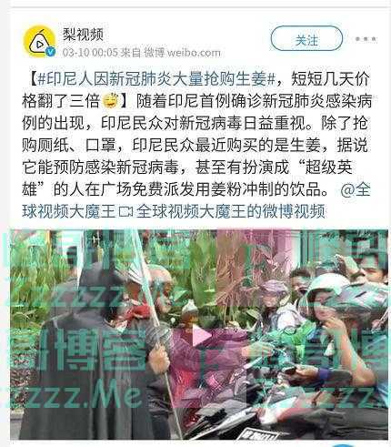 虽然印尼已有部分民众开始防疫,在广场上装扮成“超级英雄”免费发放姜粉冲剂饮品,但出发点是好的,可效果无异于当初遭哄抢的双黄连口服液。
