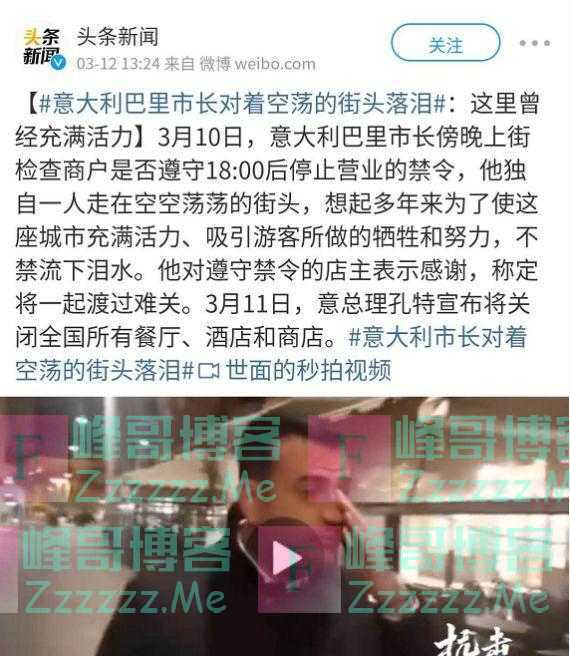 3月10日,意大利巴里宣布全城关闭商店和酒吧,看着空无一人的商场,想到昔日繁荣,巴里市长不禁眼眶湿润。