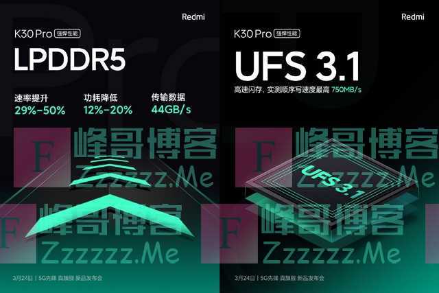 具体的硬件配置方面,除了高通骁龙865处理器之外,官方也已经确认Redmi K30 Pro将使用“真UFS3.1”闪存,随机读写速度都超过250MB/S,顺序读取速度达到1752.56MB/S,再搭配全新的LPDDR5内存,进一步提升了SoC的性能。