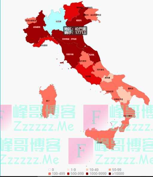我们看下意大利境内的疫情分布: