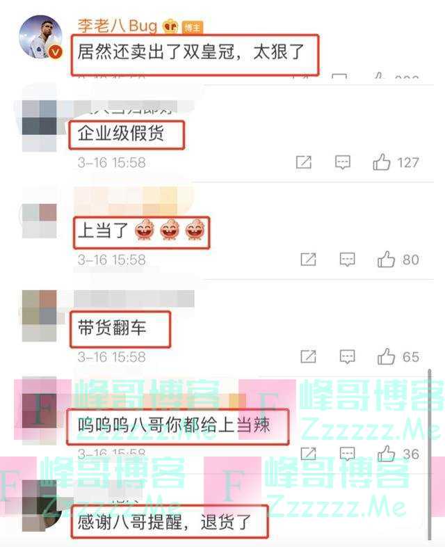 对于假货卖出了双皇冠,水友们也是议论不断,纷纷喊话上当了,八哥都给上当了!这次妥妥的带货翻车了!