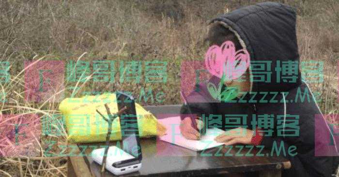 再来看看这个孩子的上课状态,和上面的“贵族”有着天壤之别,这个孩子的上课环境似乎是在草地。从照片中可以看到,孩子的上课环境非常恶劣。一张破旧的木桌,桌子上摆放着手机,还用树枝撑着。从孩子的状态可以看出,天气挺冷的,因为他缩着身子,还戴上了帽子。这样的上课环境,不免让人心疼。