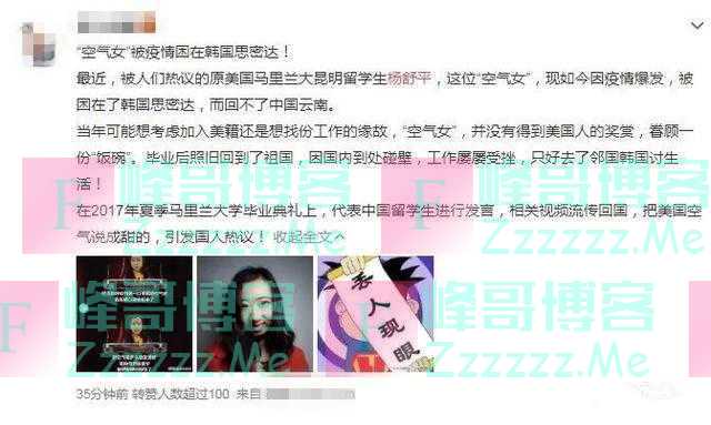 说“美国空气最清甜”的杨舒平被困韩国,想要回国了,网友:活该》发布于2020-3-30