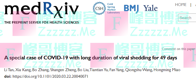 在预印本杂志medRxiv上,中国武汉的医生,报道了一位中度COVID-19的患者,竟然具有49天的病毒排除时间。据作者介绍,这是目前关于COVID-19报道中病毒阳性持续时间最长的病例。