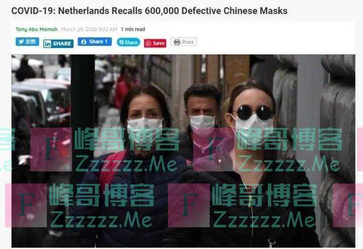 最近一起国际纠纷发生在荷兰。荷兰政府宣称在中国购买的数十万口罩“有问题”。
