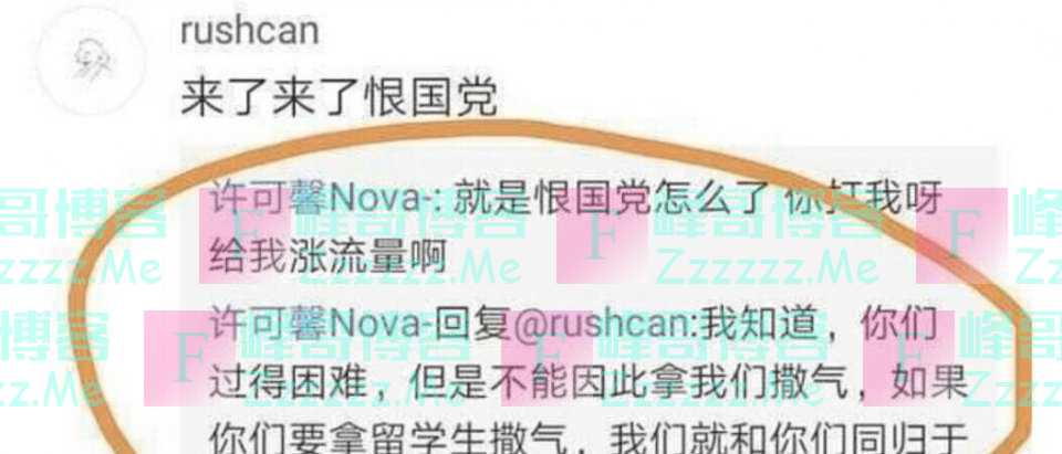 然而有时候一个人的德行和才能是不匹配的,许可馨就是一个典型的例子。她在疫情期间的出格言论颇多,让人感觉她似乎有些极端,也有些不成熟,更对国家和自己的同胞有着深深的“恨意”,还曾自称自己就是“恨国党”。