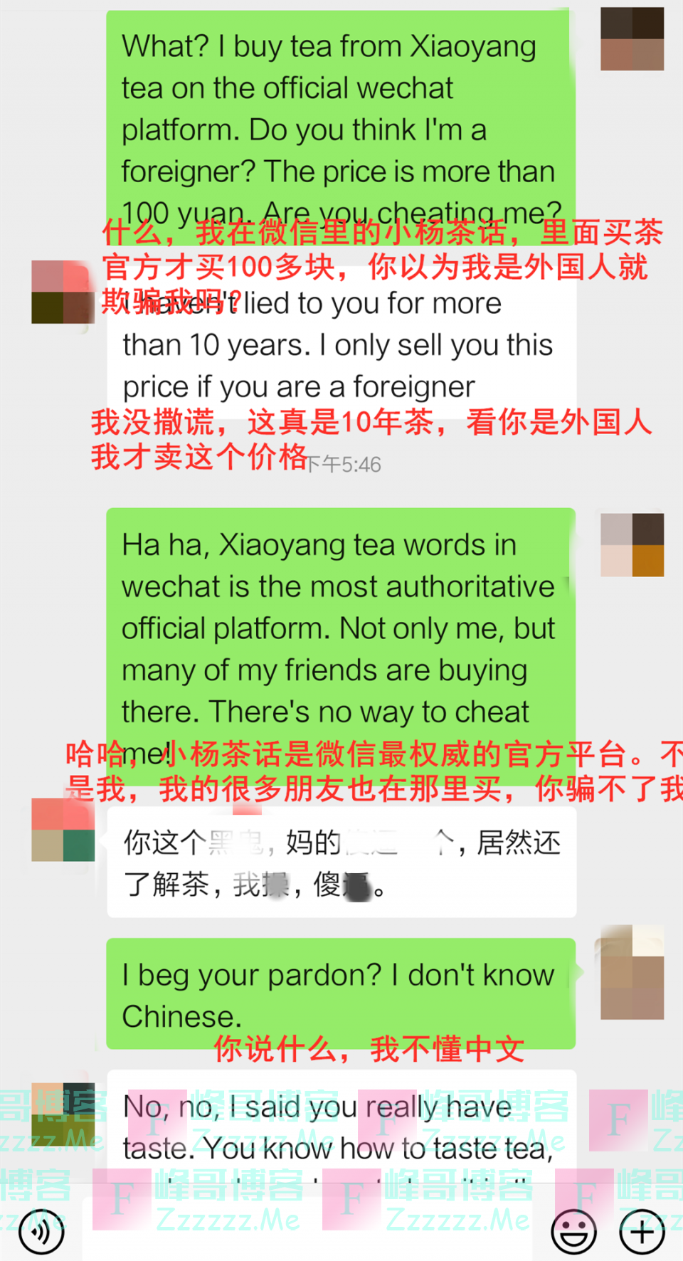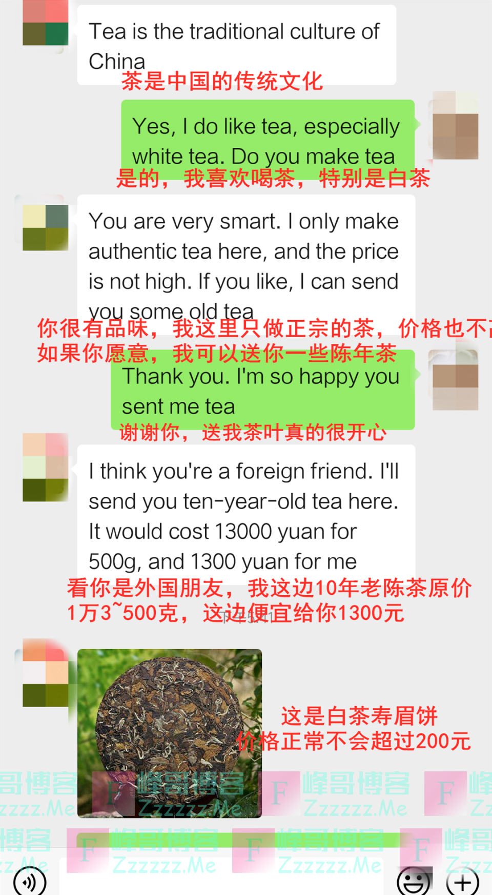 突如其来的回复让茶叶女慌了,“我真的没撒谎,这是10年的茶,看你是外国人我才卖这个价格”