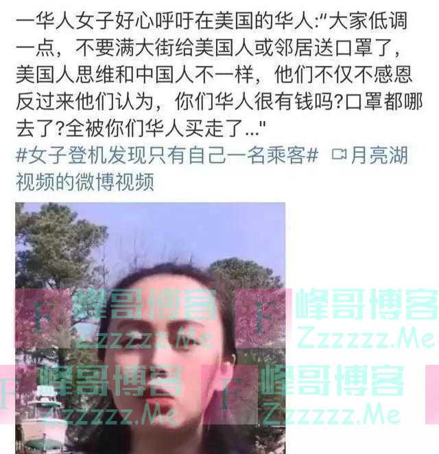 一位华人女子拍视频呼吁:“大家要低调一点,不要满大街给美国人送口罩啦,危险!”