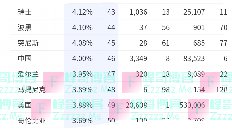 五、具体的病死率:病死率超过10%的国家有7个,分别是1.阿尔及利亚15.06%;2.法国14.74%;3.意大利12.78%;4.英国12.50%;5.比利时12.19%;6.荷兰10.28%;7.西班牙10.22%。中国这个数据是4%,大约处于中游位置,主要是因为中国最开始发现时,一切都是未知,医生们完全是根据现有认知水平摸索着医治,达到这种程度已经很了不起。美国目前是3.88%。
