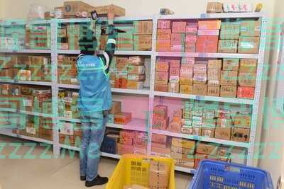 第一个是快递入库,我们只要有一个快递,就要整理好,然后标好序号,打好码,一个个放到货架上面,并且发送短信给用户,让他们来取件