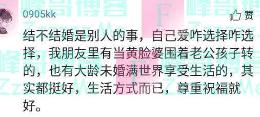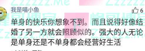 网友三:年轻时候都觉得不结婚单着都好,等过50岁在来说这话,人的思想和你的想法会随着你的年龄改变的。当你亲人父母都一个一个不在时候,只有你一个人这日子不好过。结不结婚是把双面刃,有好有坏。自己选择走完就行,没必要纠结争论这些问题。