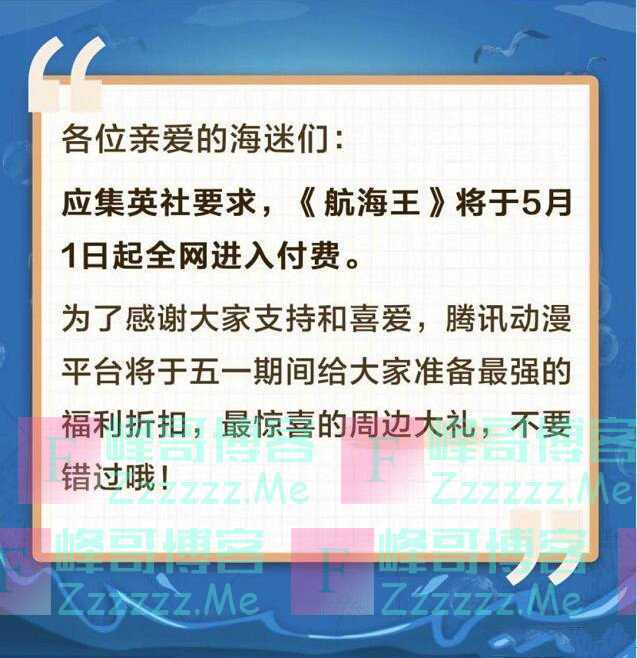 该来了还是来了!《海贼王》漫画从5月1号起进入全网收费模式!》发布于2020-4-21