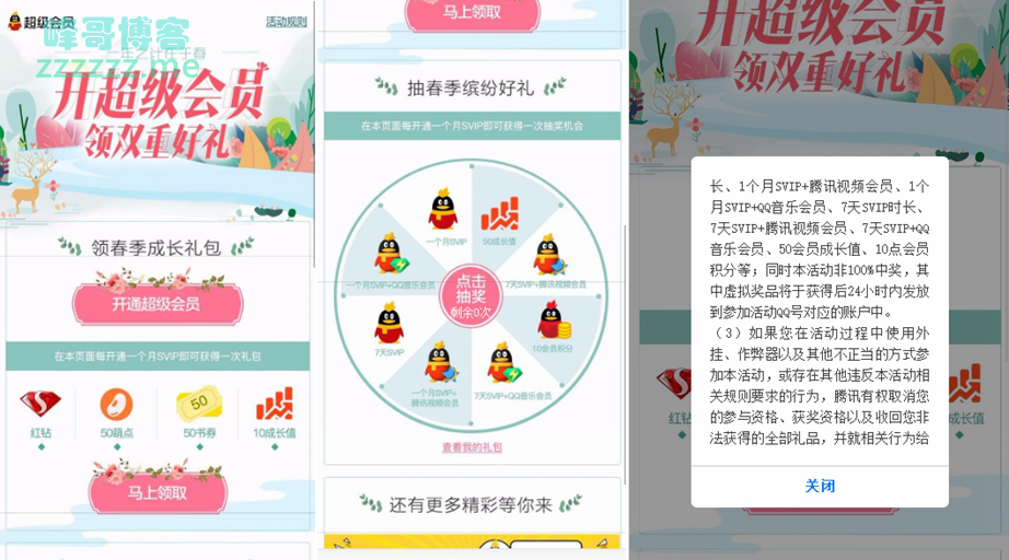 开1个月超级会员领1个月红钻,然后可以在下面抽奖,几率很高,刚需的上车