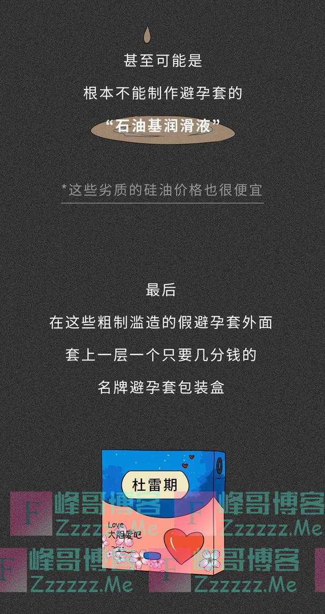 它原本是人类爱情的小帮手,但现在,因为不良商家的恶性操作,这些没有卫生保障的假冒伪劣,却成为伤害大家身体的隐形炸弹...这些黑作坊为什么要这样做呢?原因其实很简单,为了钱!你永远也想象不到,这个小小的东西,到底有多暴利。总共成本还不到几毛钱,摇身一变,就成了能卖到一只六 七块钱高价的“名牌产品”,这些乔装打扮过的劣质产品,会通过各种方式流向一切你能购买到的渠道,网络,宾馆,酒店,便利店...