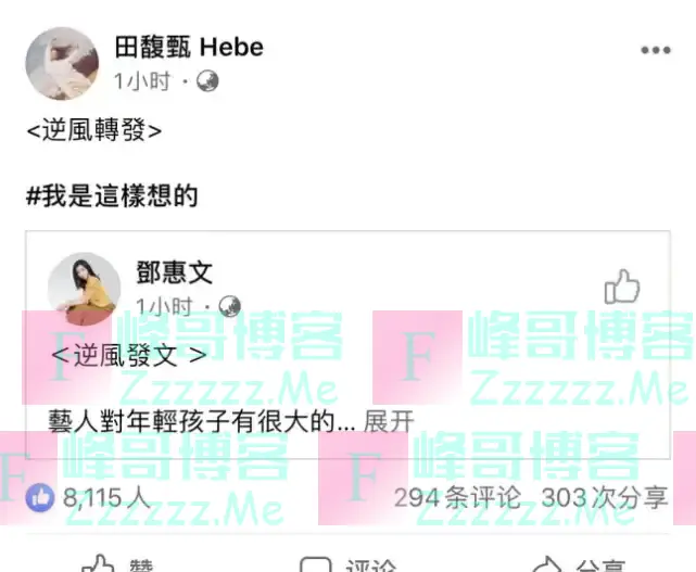 而田馥甄转载了一篇女医师的妙论表示赞同,称罗志祥只是对感情不忠,两个人是感情也只是属于私人恩怨,不应该被发到网络上接受公审,而且没有做强J和犯法的事情。