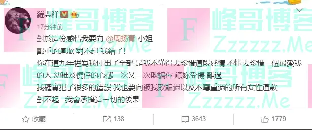 而罗志祥其实也已经有所觉悟,在昨天的道歉文最后,就表示会“承担这一切的后果”,似乎依旧做好了面临一切的准备。