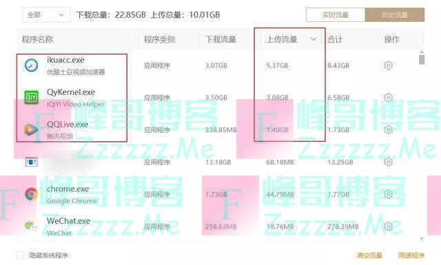 而且在我第二天来公司,打开流量监控软件时,我发现它们不但在后台上传还一直在下载。