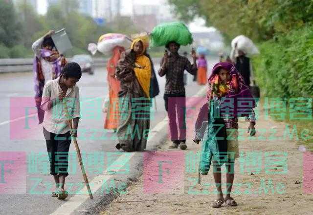 在印度,封国令下达之后大量临时工人失去了原有的工作机会,不得不拖家带口,步行几百里返回贫困的乡村。